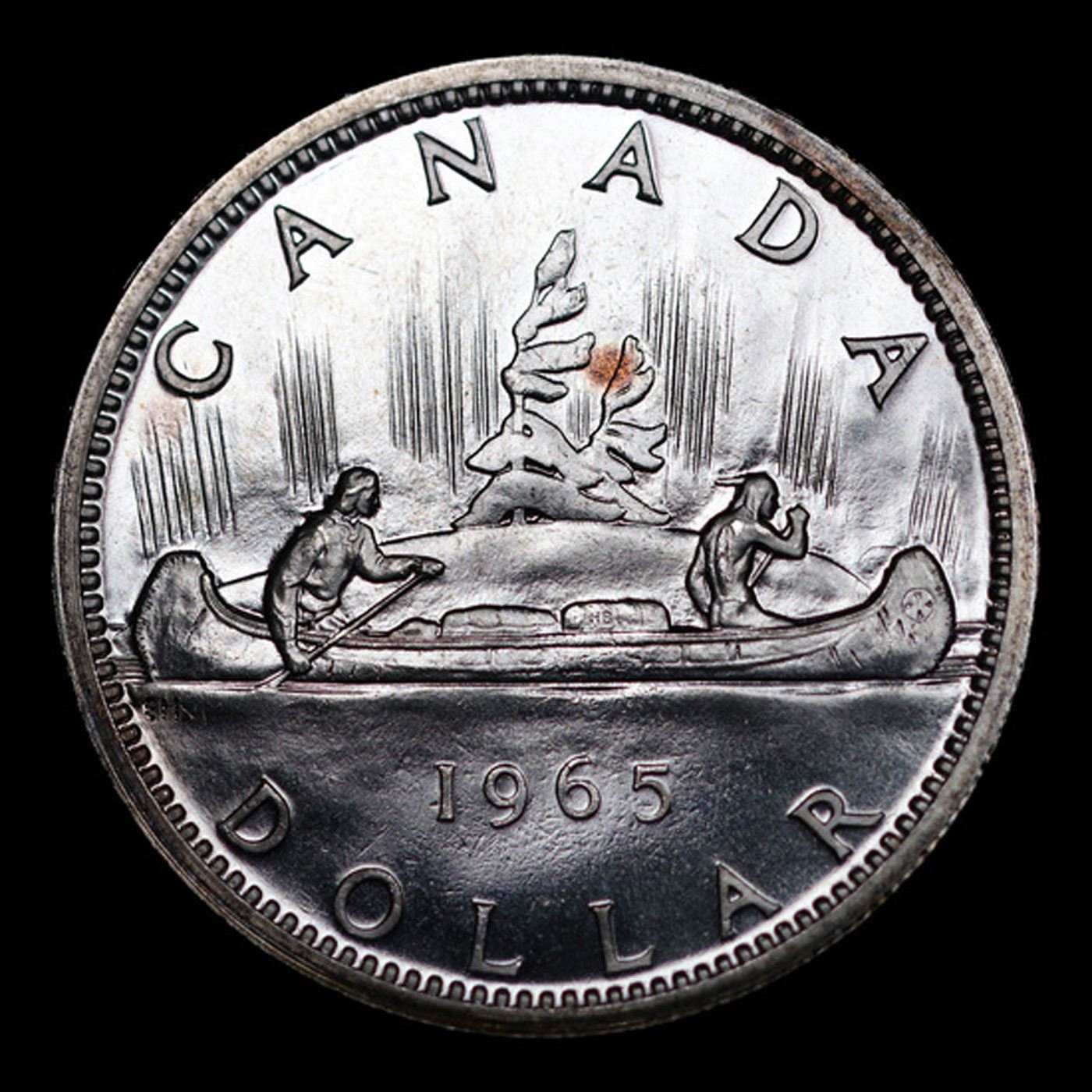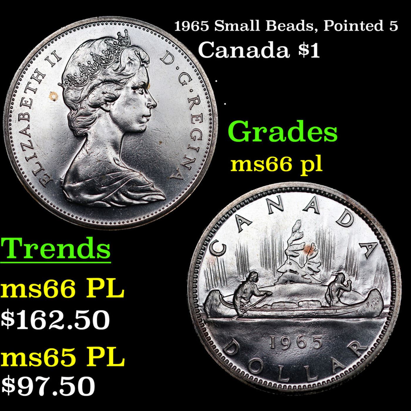 1965 Small Beads, Pointed 5 Canada Dollar $1 Grades GEM+ UNC PL.