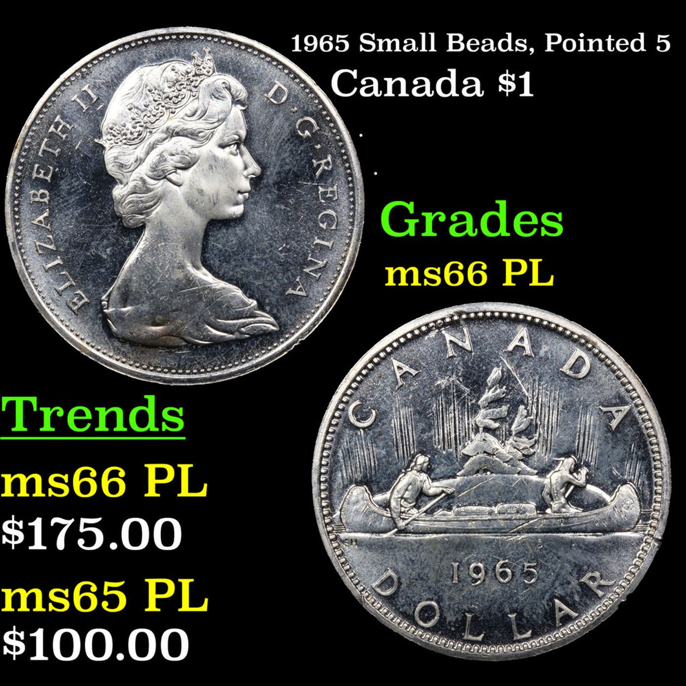 1965 Small Beads, Pointed 5 Canada Dollar $1 Grades GEM+ UNC PL