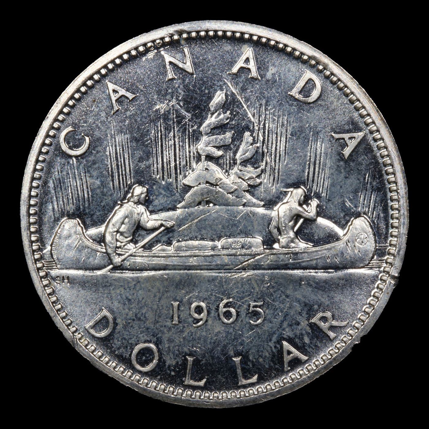 1965 Small Beads, Pointed 5 Canada Dollar $1 Grades GEM+ UNC PL.