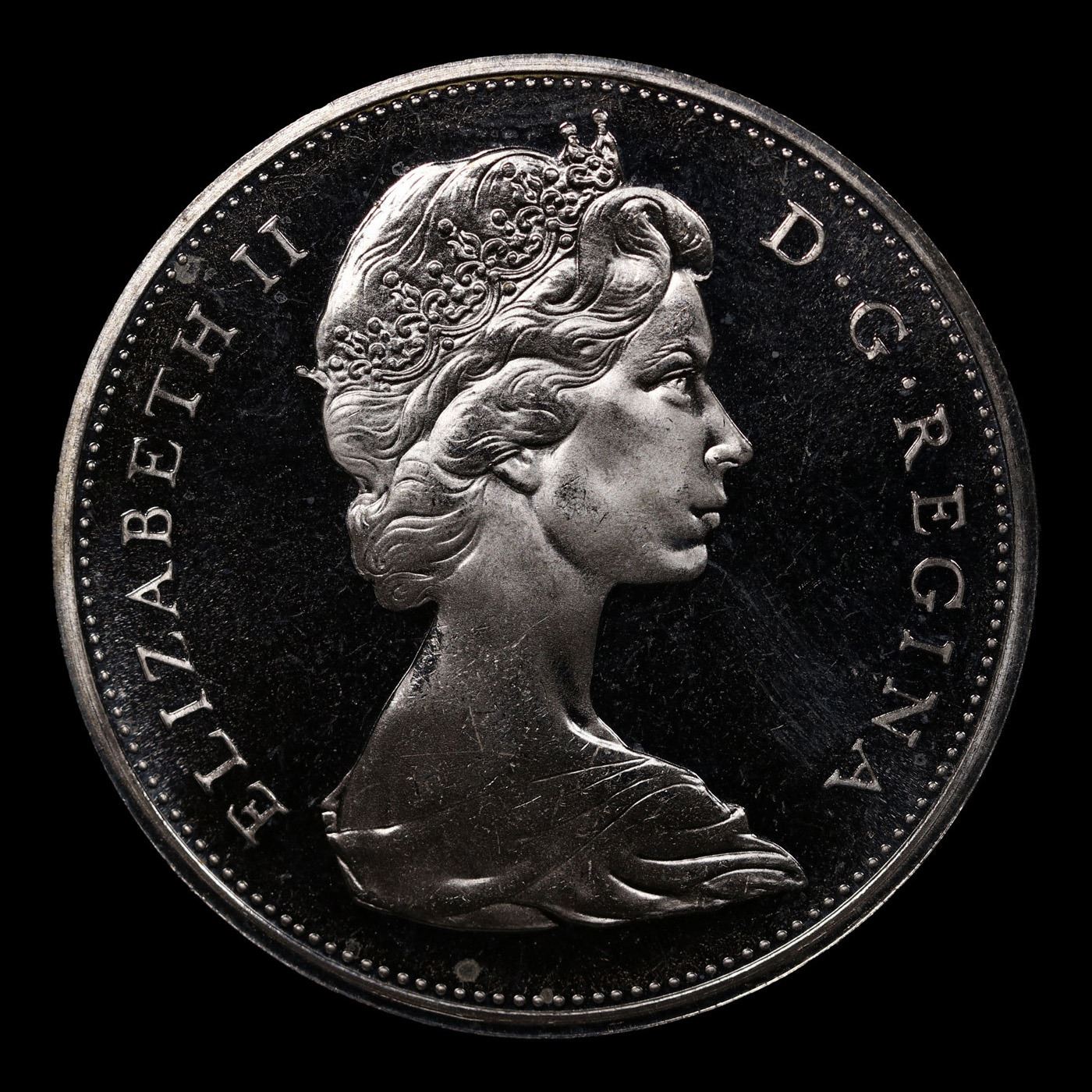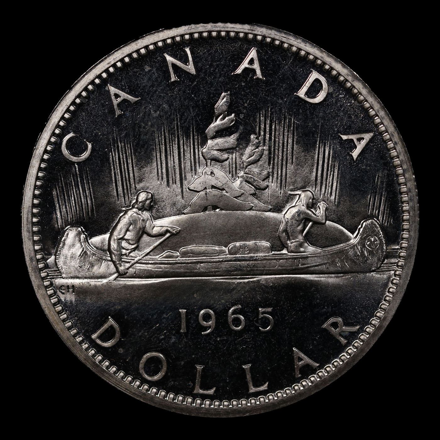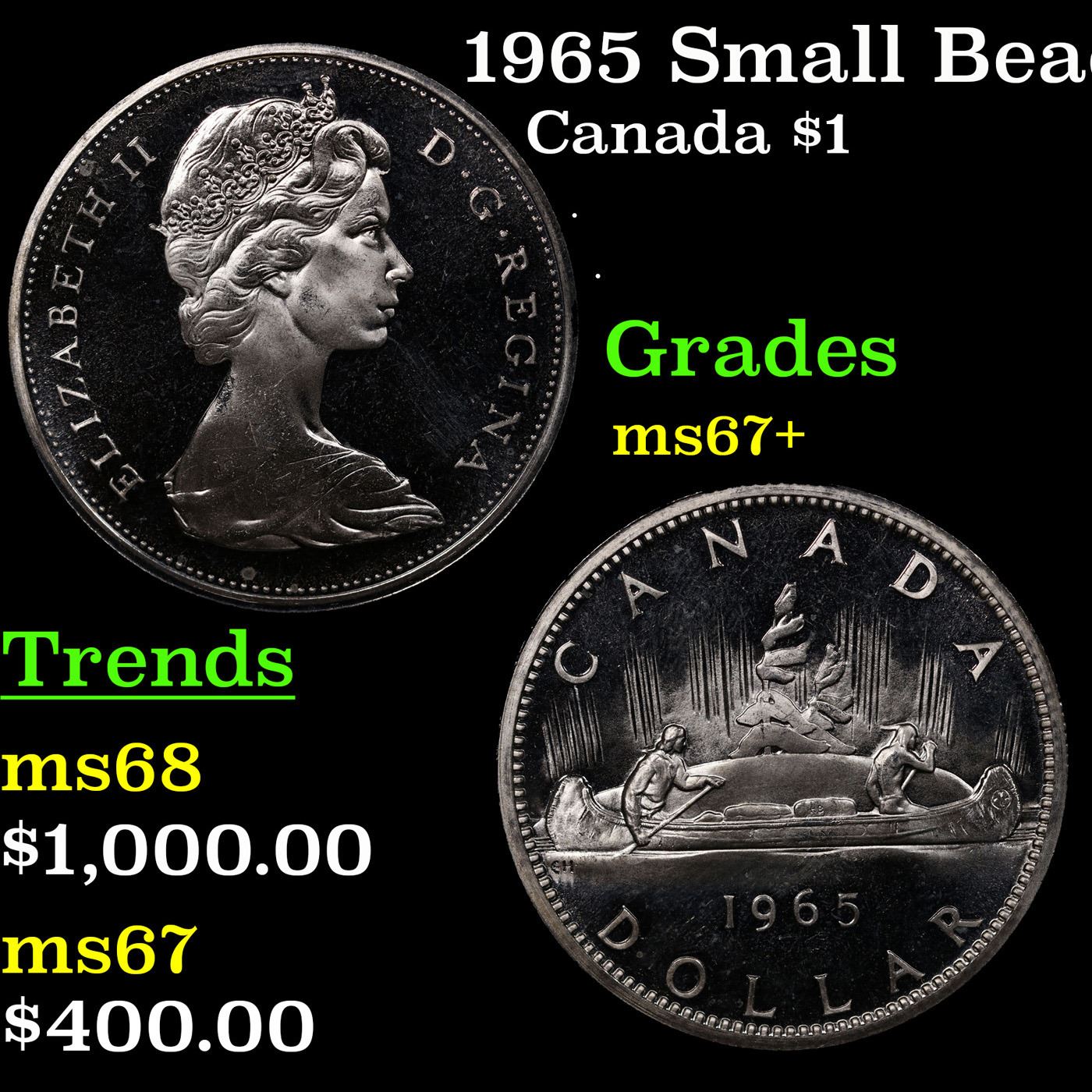 1965 Small Beads, Pointed 5 Canada Dollar $1 Grades Gem++ Unc.