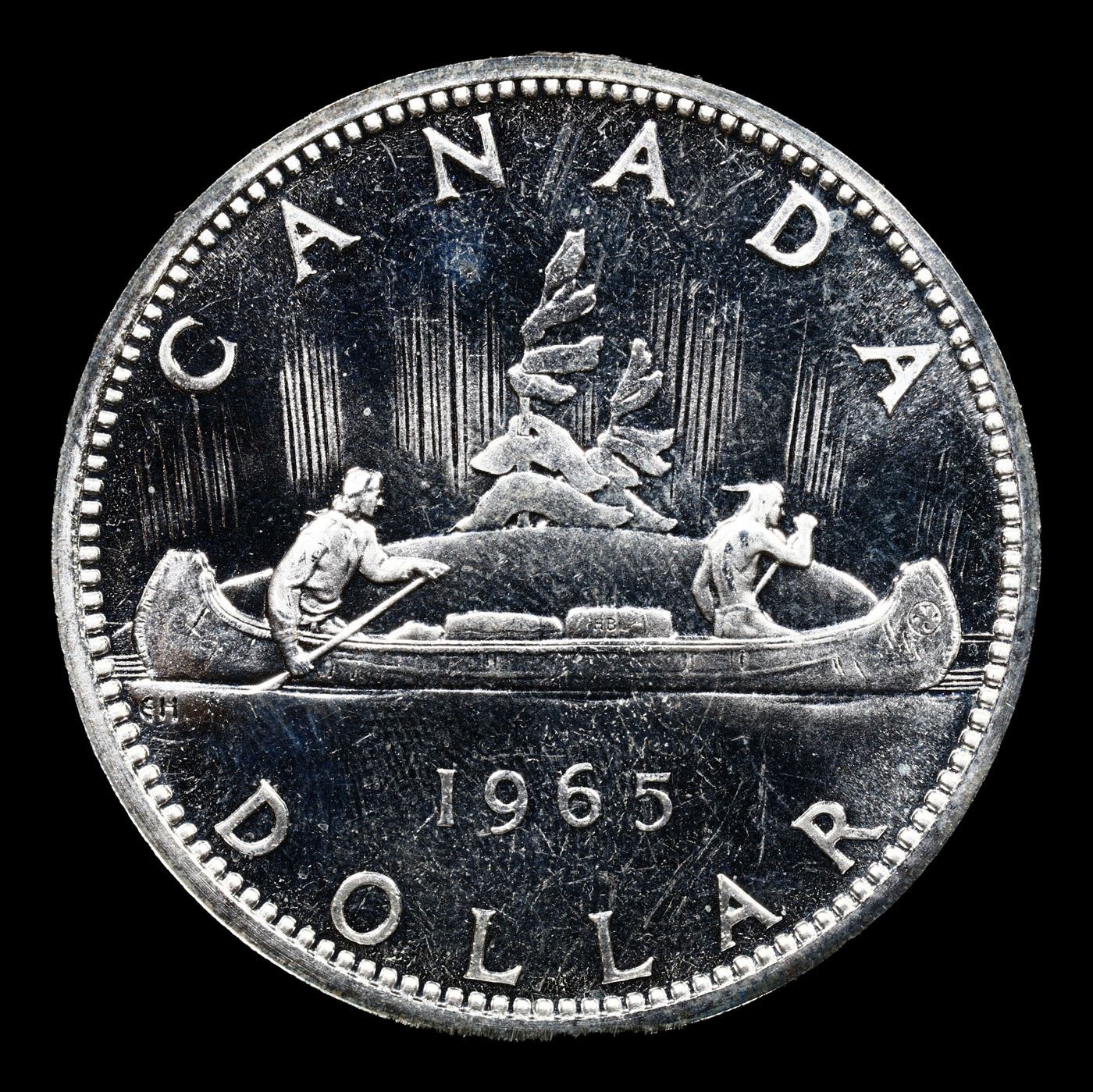 1965 Small Beads, Pointed 5 Grades GEM+ UNC PL. Why were there so many different varieties among the 1965 and 1966 Canada Dollars? It all comes down to trial and error. Technical flaws cropped up when striking began for the new portrait of Queen Elizabeth II, designed by Mary Gillick. Originally, the 1965 Queen Elizabeth II Dollars were struck bearing the Small Beads variety. However, this motif, featuring a flat field, proved to be harsh on the dies and led to a short die life.Adjustments were made making the field more concave and upward sloping toward the rim, resulting in the Medium Beads variety. Finally, Royal Canadian Mint officials fine-tuned the obverse, further sharpening the dished concavity of the fields and increasing the size of the beads, producing the Large Beads variety. Along with these changes, which are seen on both the 1965 and 1966 dollars, there were also refinements to the shaping of the “5” on the 1965 dollars. Some of these coins bear a “5” with a bluntly edged tail, others showcase a pointed tail on the “5.” The “Blunt 5” is known among only the Small Beads and Large Beads varieties, while the “Pointed 5” is paired with all three bead varieties.While some hobbyists assemble Canadian Dollars by year and bypass the major varieties, a great many enthusiasts pursue the different 1965 and 1966 varieties as budgets allow. One of the most common paths collectors take with these varieties is to incorporate a complete set of the 1965 Canadian Dollars, as these are generally not cost prohibitive and collectively represent the various bead sizes encountered on the Canadian Dollars of the era. Collectors of greater financial means also include the 1966 varieties, which encompass the rare 1966 Small Beads Dollars.Those who venture into collecting Canadian Dollars encounter many other varieties that are similar to the 1965 and 1966 notables mentioned here. Hobbyists who study 1967 Canadian Dollars will also find small- and large-bead varieties on the reverse of this popular coin bearing a flying goose to honor the centennial of Canada’s confederation.Additionally, there are numerous varieties involving the presence of Queen Elizabeth’s shoulder strap on 1953 and 1954 Canada Dollars, the details of the water lines on the various 1950s dollars, and the strength of detail in the Northern Lights on the Voyageur reverse of the early 1960s. With so many interesting and colorful varieties to their name, it’s no wonder Canadian Dollars have long been one of the most popular series for collectors throughout North America and around the world!