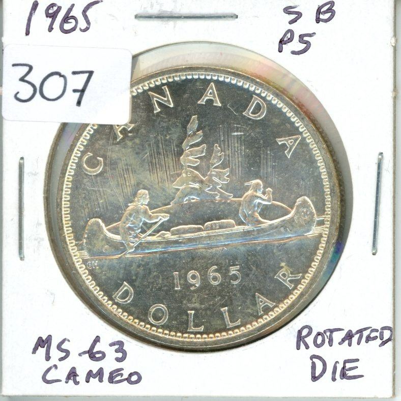 1965 Small Beads Pointed 5 Silver Dollar with Rotated Die. Type I. MS-63 with Cameo. Nice.