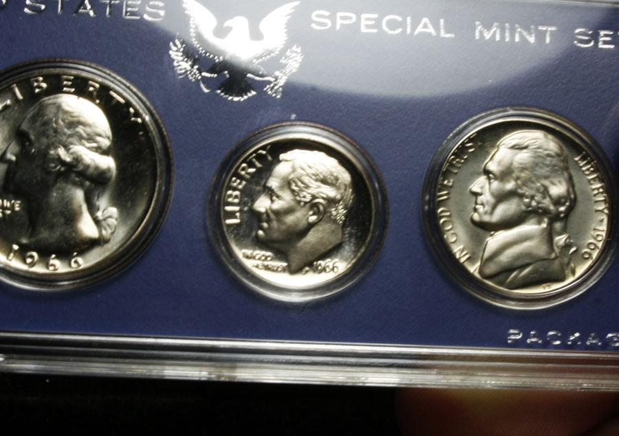 Highlight of the set is a DCAM Dime! I feel it's an SP67 DCAM, which is valued Retail by PCGS at $2500. Here are the surrounding values. SP66 DCAM is $750, SP68 DCAM is $7500, SP66 CAM is $45, SP67 CAM is $100 and SP68 CAM is $575. Virtually all 1966 SMS Dimes graded my PCGS have been graded 66-68, Approx 97% of them. Of the Approximately 1400 Pieces graded by PCGS, only 200 got the CAM or DCAM grade. I think its an ms67 DCAM. Please look at the big pictures. Note, the set contains a 40% Half Dollar. Estimated Value $500