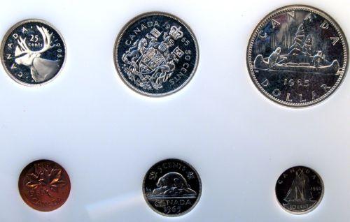 Canada 1965 Specimen Set in Capital Holder. A virtually flawless Gem set, all with heavy cameos, some of the silver with pale golden rim toning and the Cent is Red
