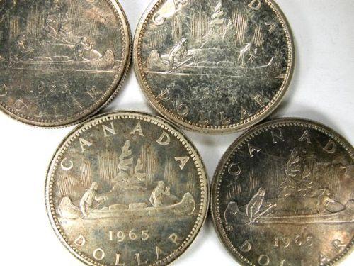 Canada Silver Dollar 1965 Type 1, 1965 Type 2, 1965 Type 3 and 1965 Type 4. Four light-medium toned pieces, all Choice Cameo Proof-Like or better