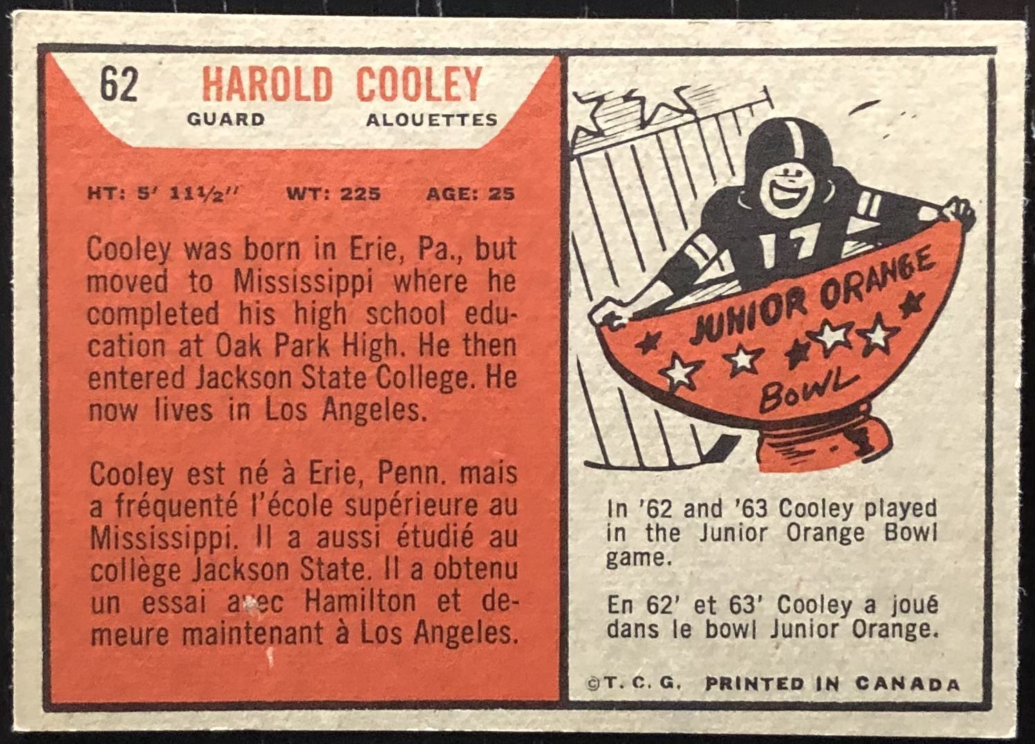 Card #62 CFL, football, vintage, rookie
