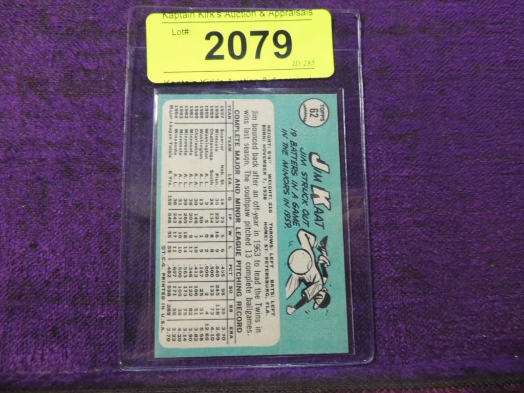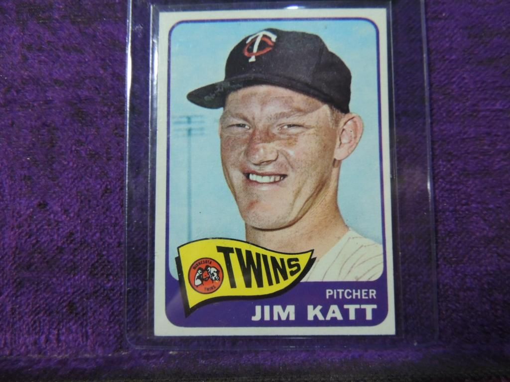 1965 TOPPS JIM KATT #62 BASEBALL CARD. EXCELLENT CONDITION. BASEBALL CARD. TRADING CARD. COLLECTIBLE. VINTAGE CARD. PROTECTIVE PLASTIC SLEEVE. RARE CARD. AS SHOWN. SEE PHOTO FOR MORE DETAILS.