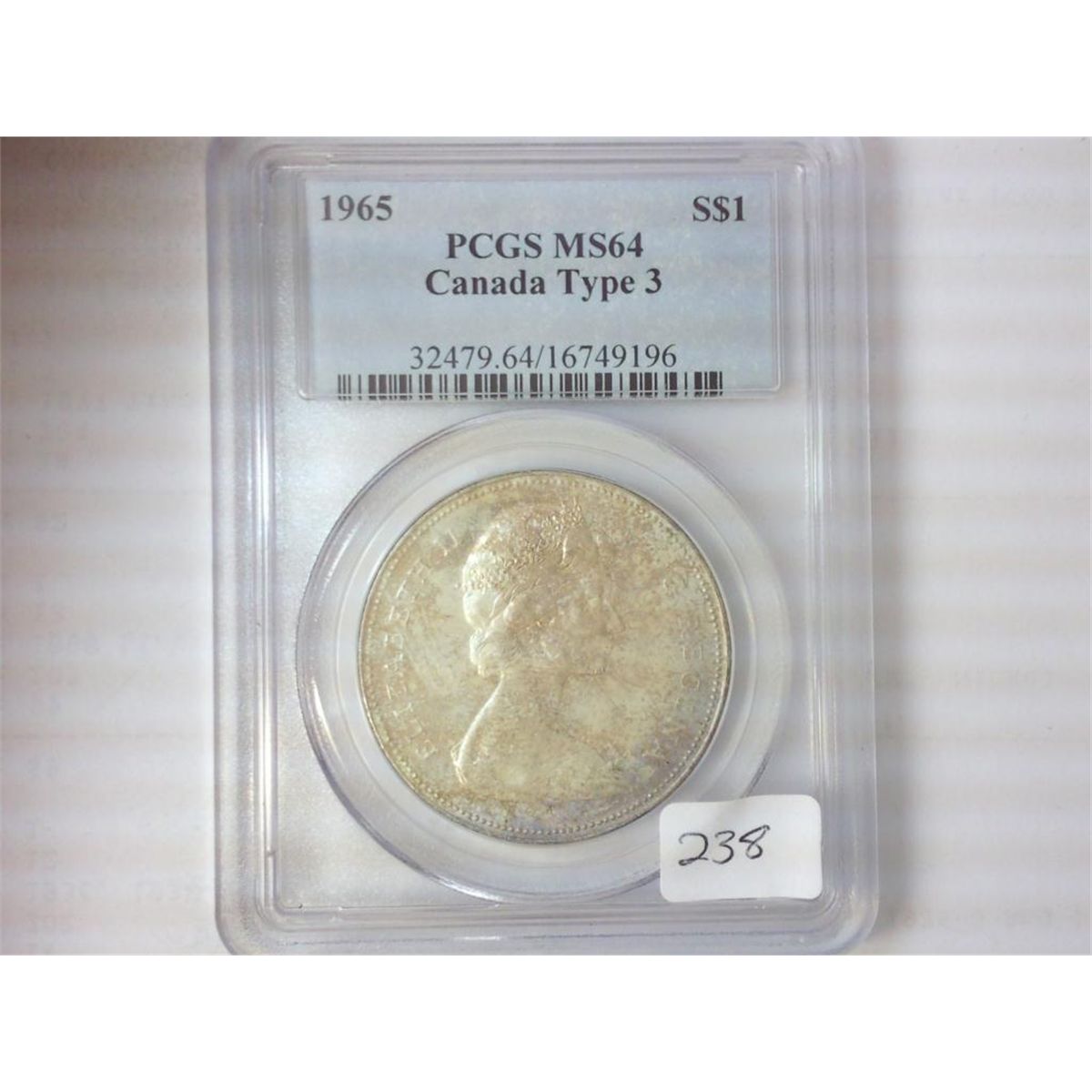 1965 TYPE III CANADA SILVER DOLLAR PCGS MS64