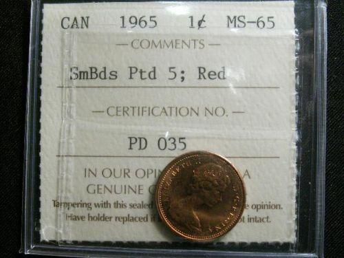 1965 Type 4 1¢ ICCS MS65 Red. A very flashy coin! Excellent strike and clean fields.