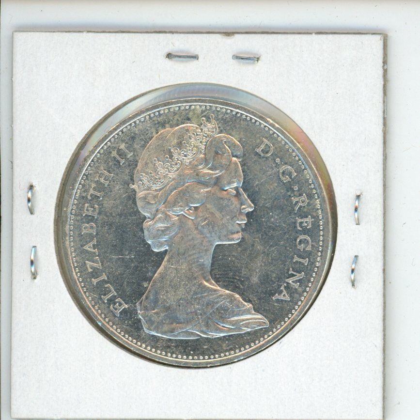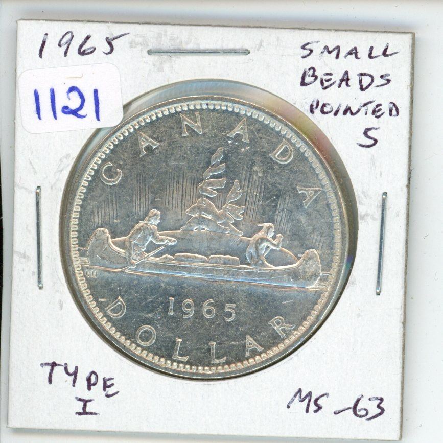 1965 Type I Canadian Silver Dollar. Small Beads, Pointed 5. MS-63. Lustrous.