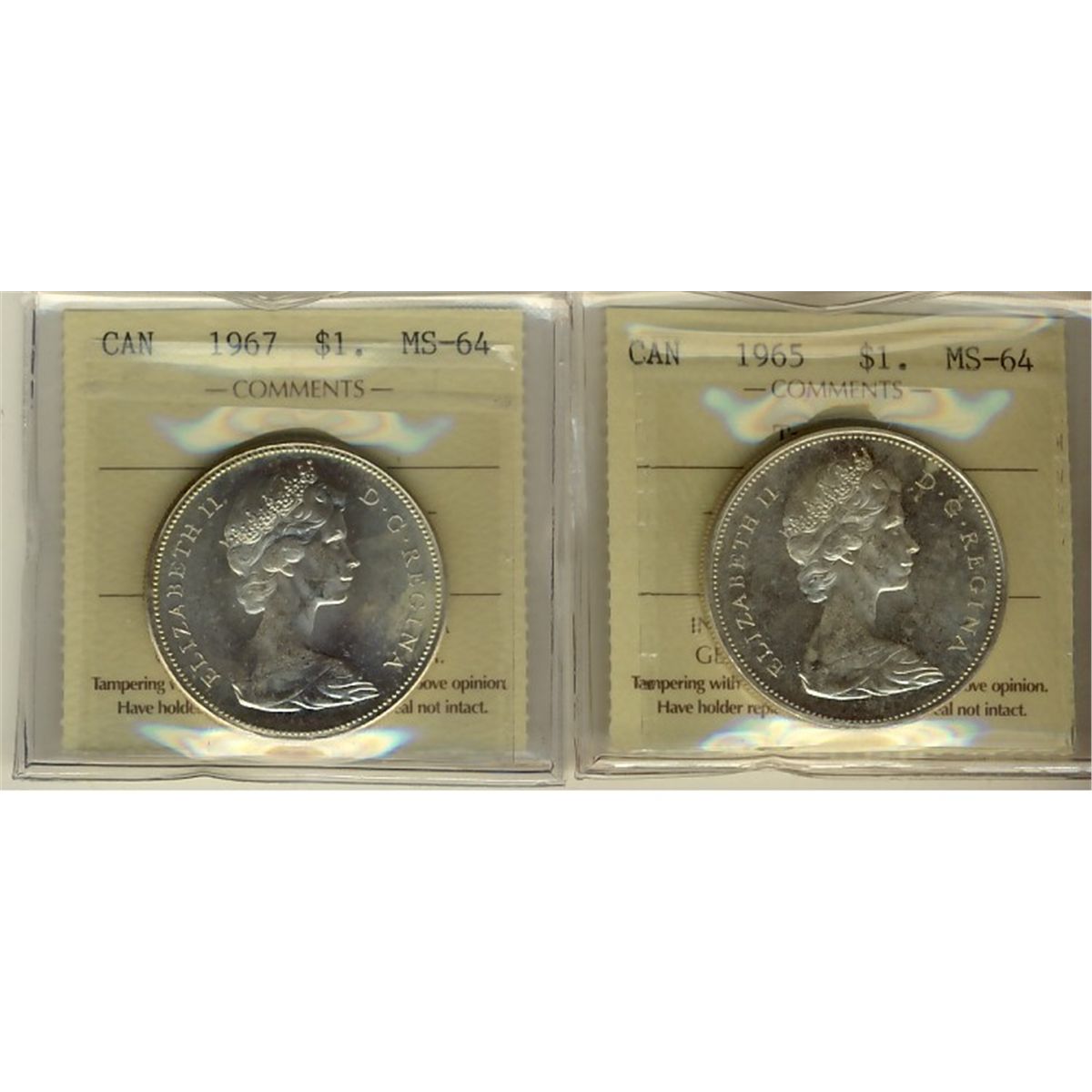 1965 Type V & 1967 $1 ICCS MS64. Lot of 2 coins.