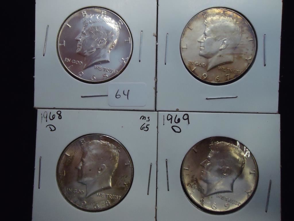 1965 UNC, 67,68-D UNC & 69-D 40% SILVER JFK'S