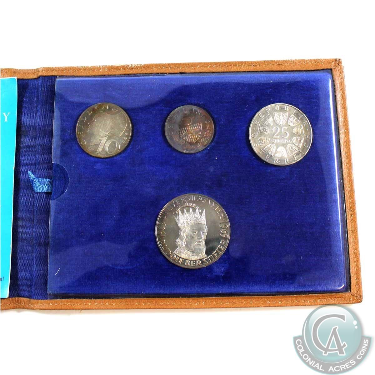 1965 Vienna University 4-coin Proof Set. Please note coins are toned.