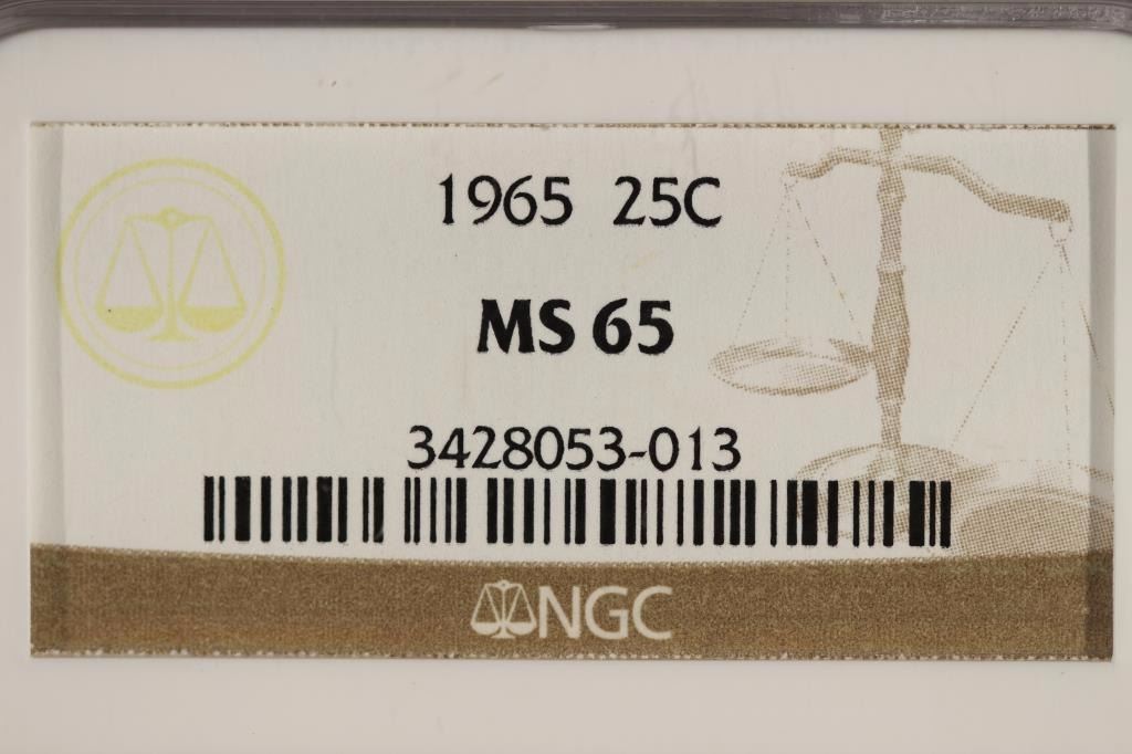 1965 WASHINGTON SILVER QUARTER NGC MS65
