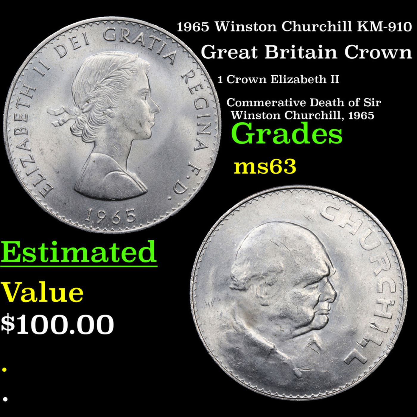 1965 Winston Churchill KM-910 1 Canadian Crown Grades Select Unc. Obverse Young laureate bust of HM Queen Elizabeth II right, legend around, date below. Reverse A somber-looking portrait of Sir Winston Churchill, in a siren suit facing right.