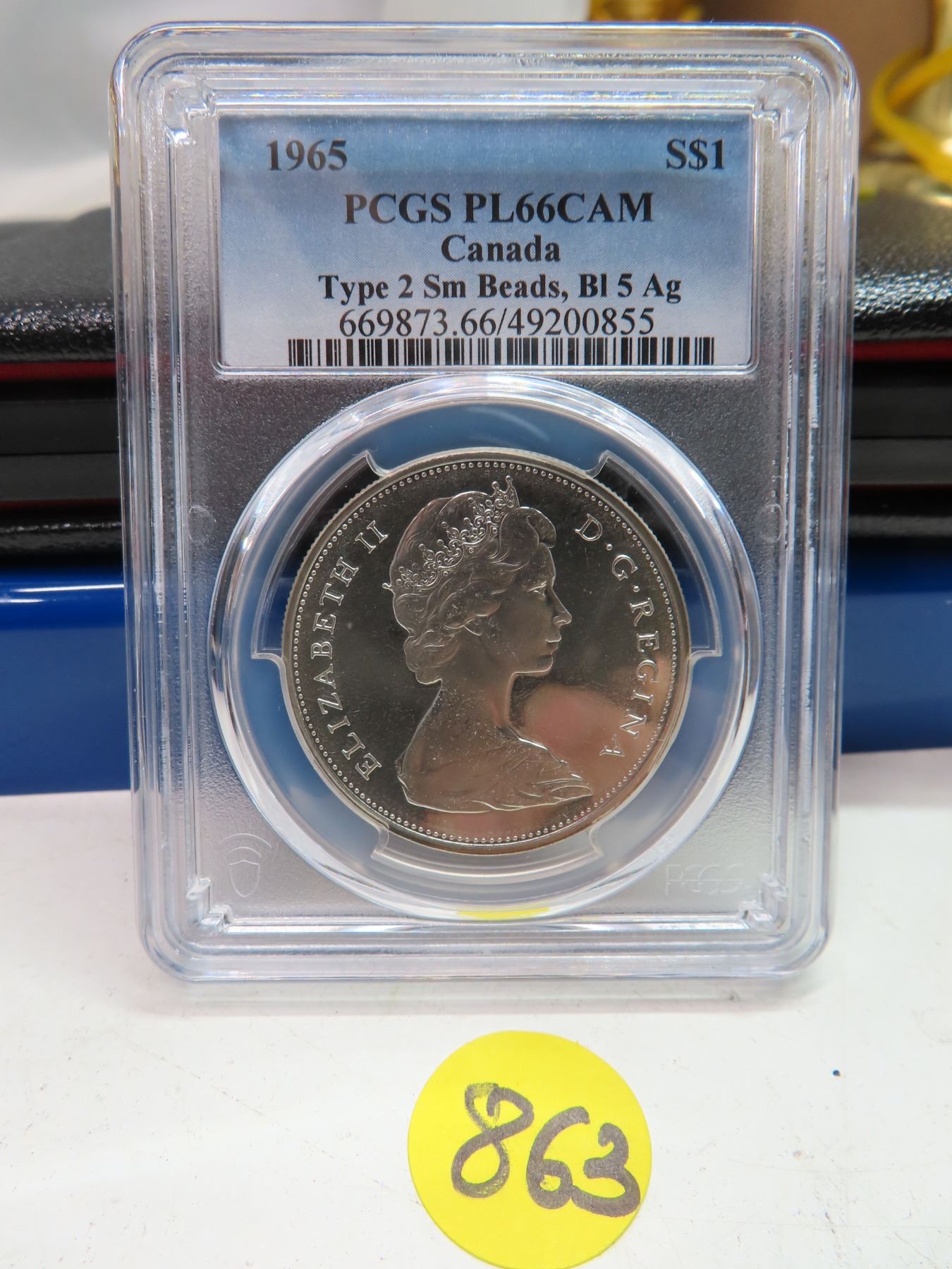 1965 canada type 2 sm beads graded $1 coin