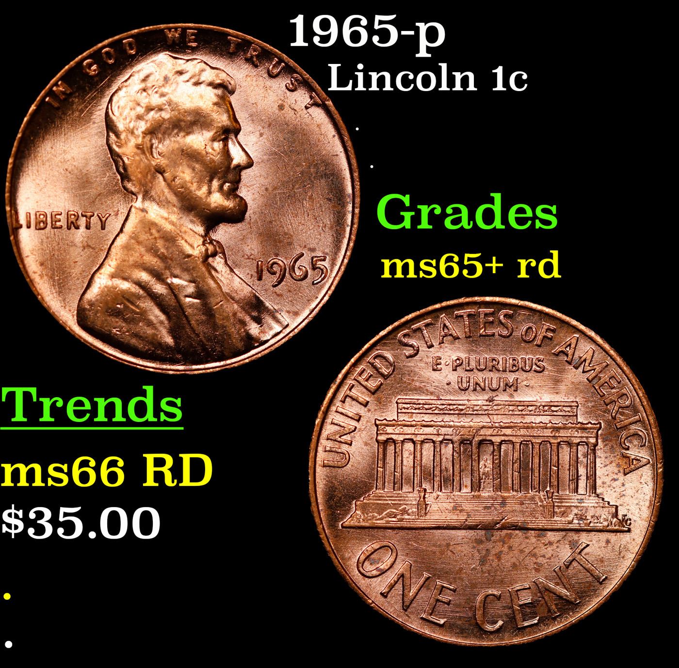 1965-p Lincoln Cent 1c Grades Gem+ Unc RD.