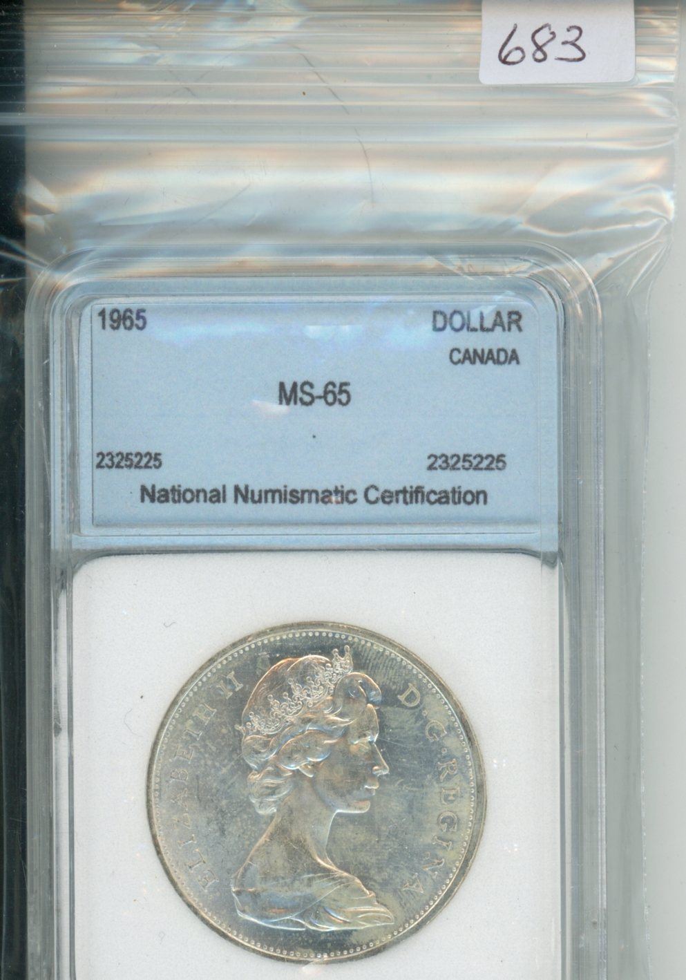 1965 pointed 5 large beads graded ms-65 silver dollar