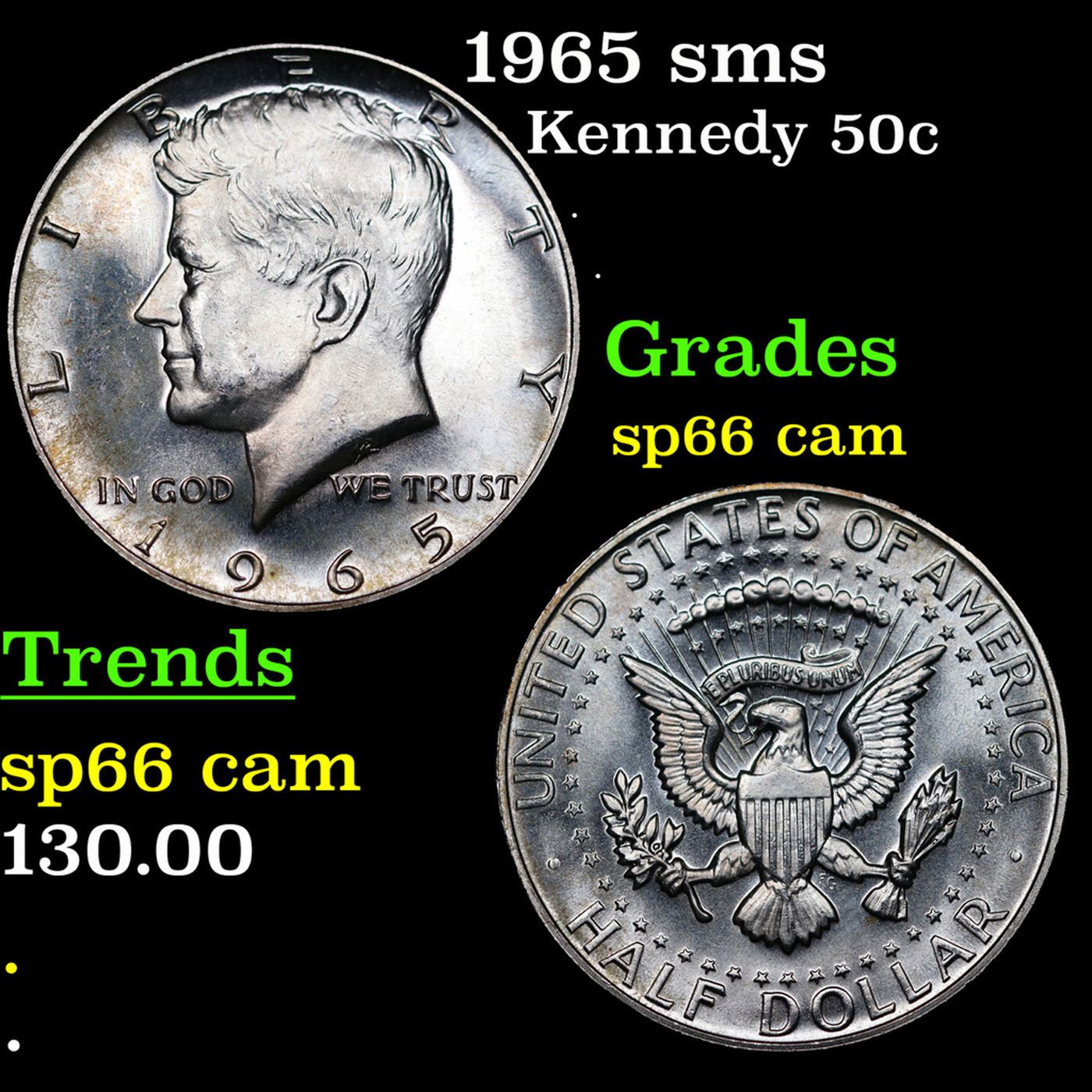 1965 sms Kennedy Half Dollar 50c Grades sp66 cam.