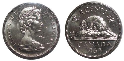 0123 - 1965LBDet. Canada Five Cents-ICCS MS63