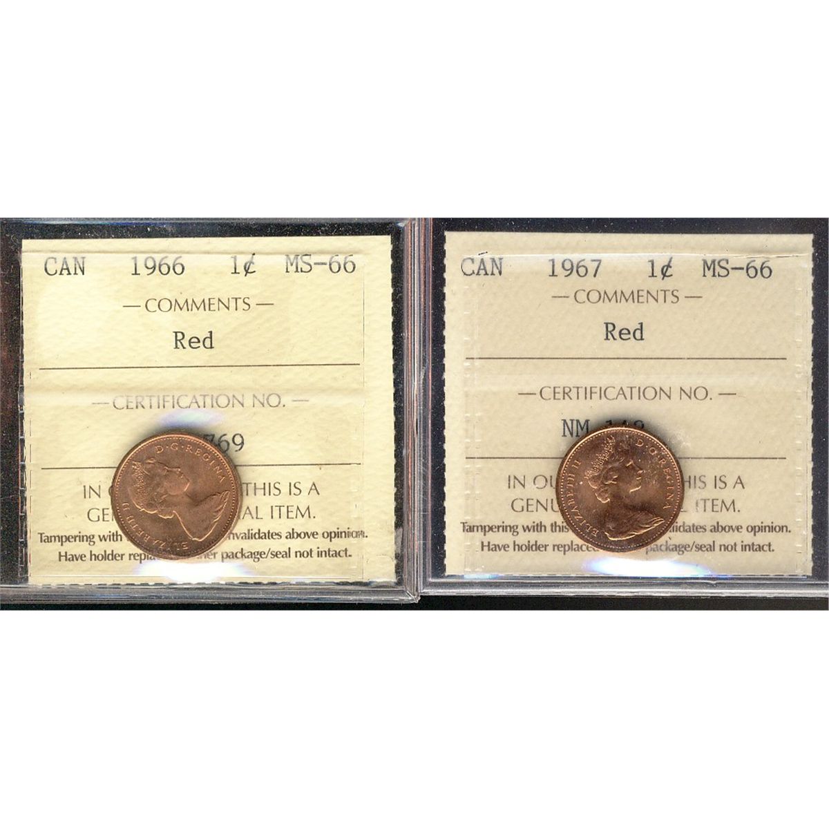 1966 1¢ & 1967 ICCS MS66RD. Lot of 2 coins.