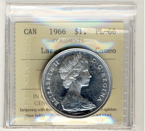 1966 1 Dollars LgeBds, ICCS PL66; Cameo.