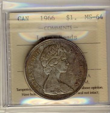 1966 $1 Large Beads ICCS MS64