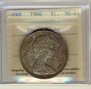 1966 $1 Large Beads ICCS MS64