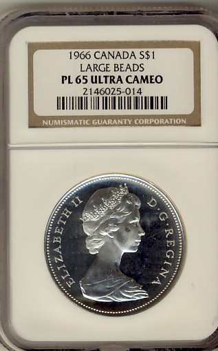 1966 $1 Large Beads NGC PL66 Ultra Heavy Cameo.