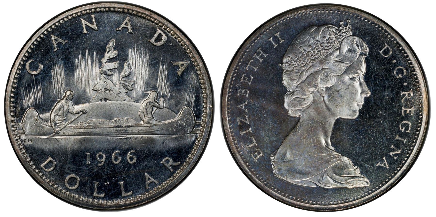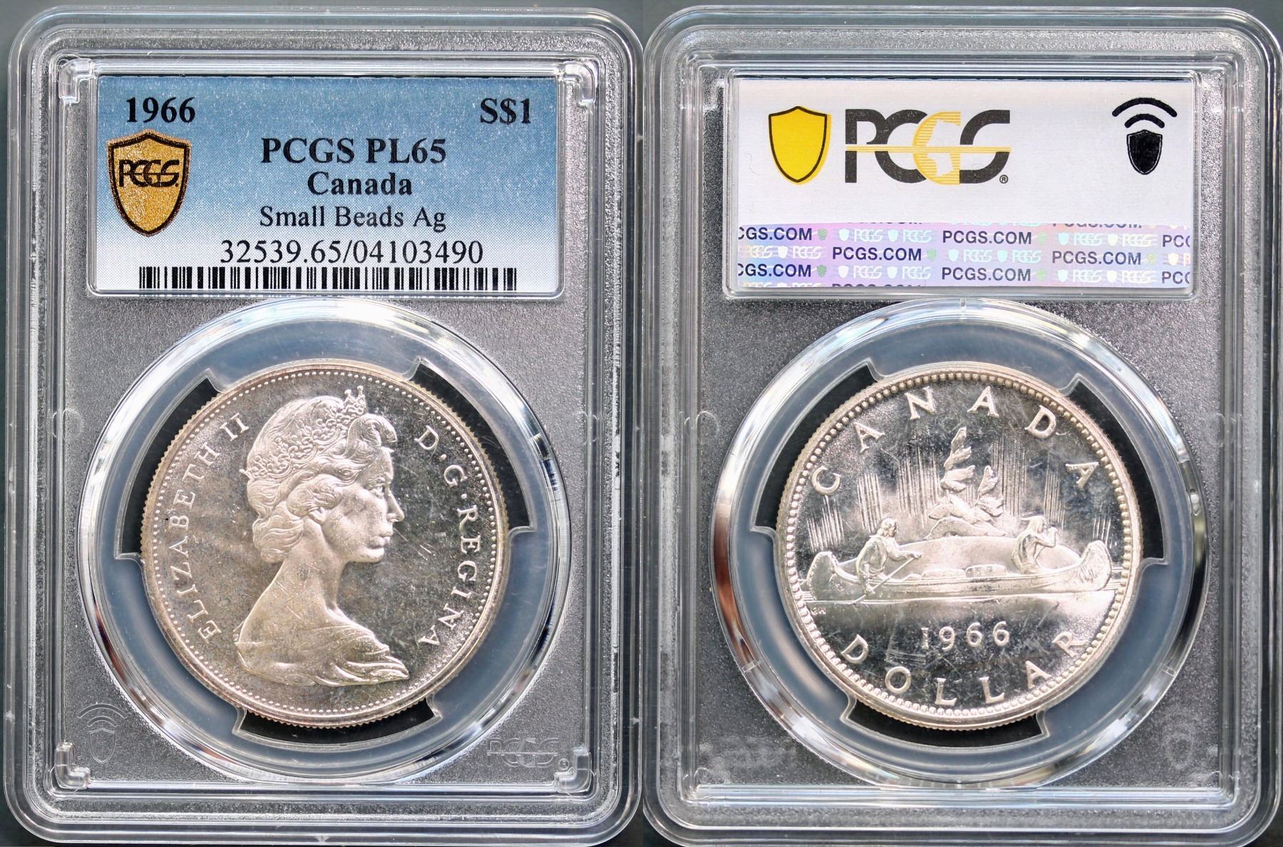 1966 $1 "Small Beads" PCGS PL/Gem Mint State-65, Brilliant and lustrous. Rare and desirable.