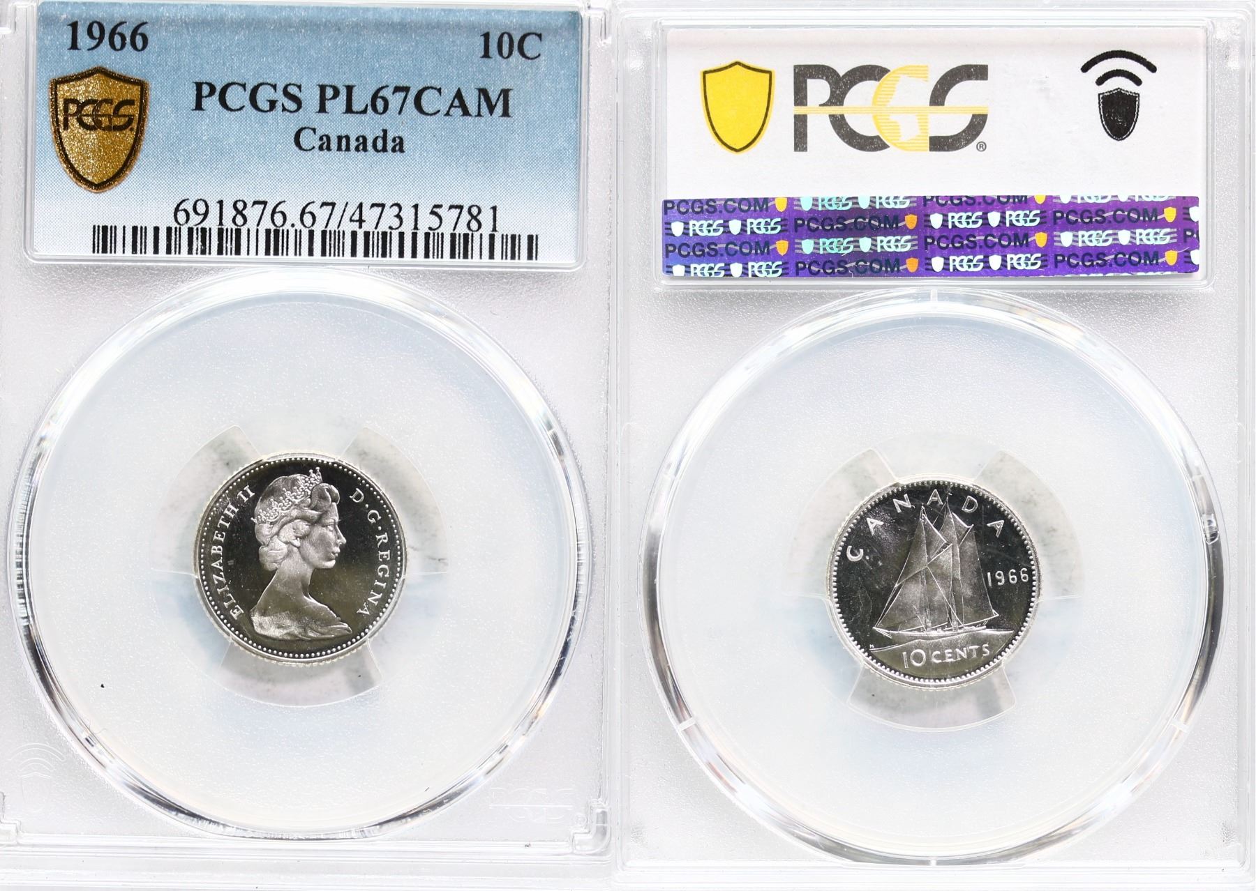 1966 10¢ PCGS Superb Gem Proof-Like-67 CAMEO, Fully brilliant with great reflective surfaces.