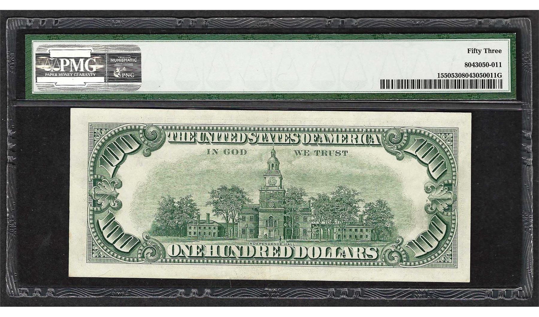 One 1966 $100 Legal Tender Note Fr.1550 PMG About Uncirculated 53. PMG Certified.
