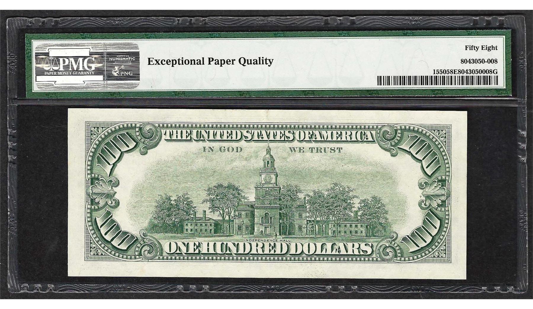 One 1966 $100 Legal Tender Note Fr.1550 PMG Choice About Uncirculated 58EPQ. PMG Certified.