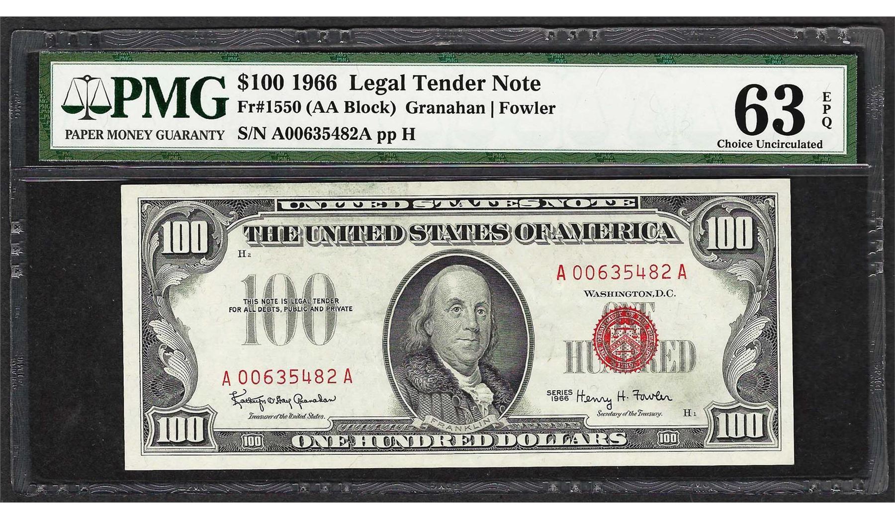 1966 $100 Legal Tender Note Fr.1550 PMG Choice Uncirculated 63EPQ