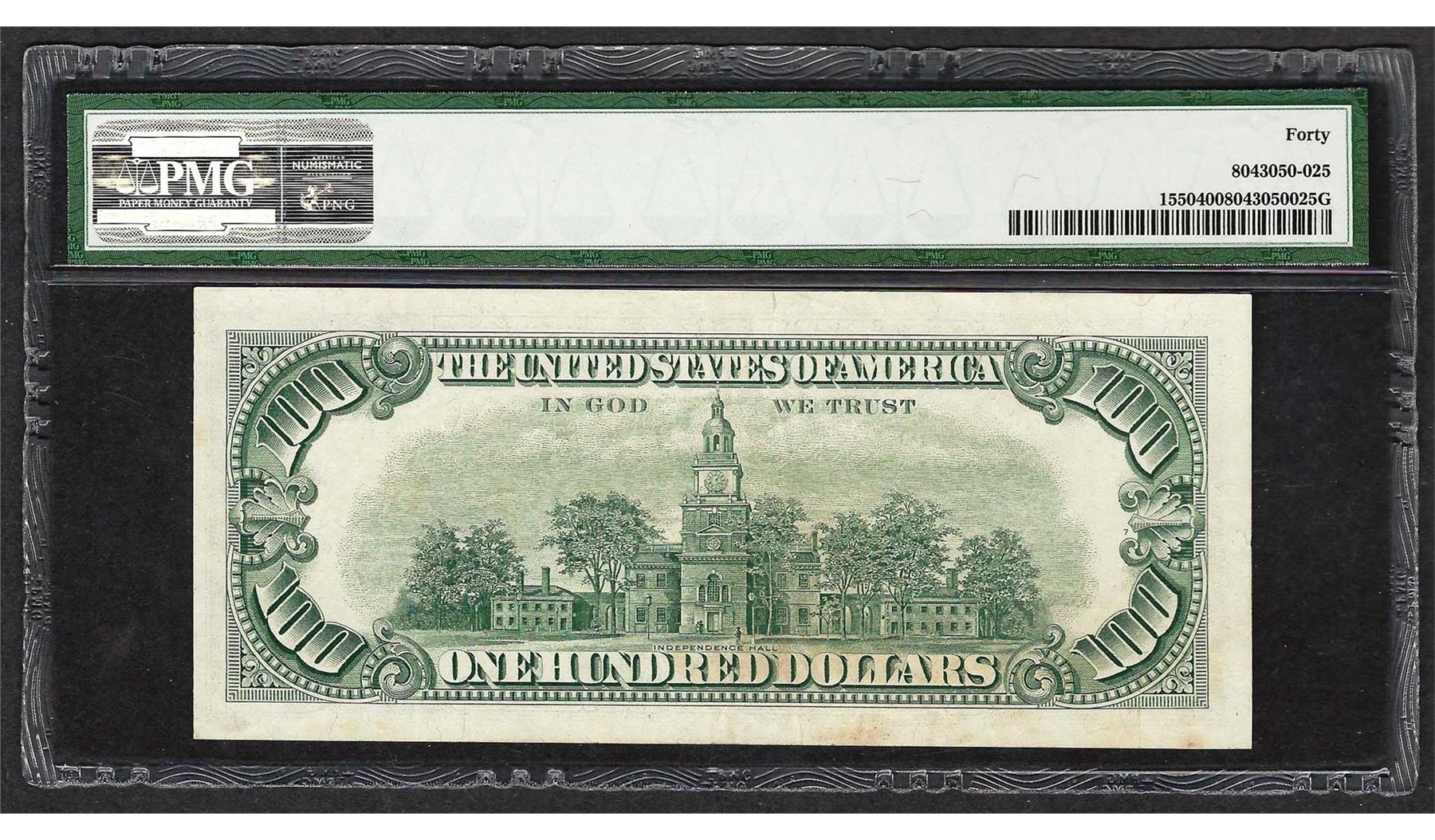 One 1966 $100 Legal Tender Note Fr.1550 PMG Extremely Fine 40. PMG Certified.