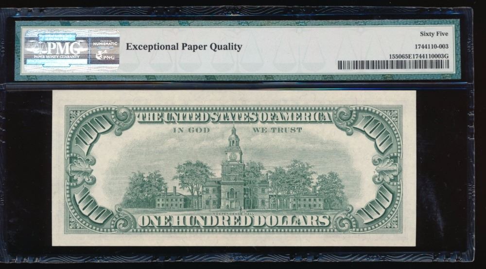 One 1966 $100 Legal Tender Note PMG 65EPQ.