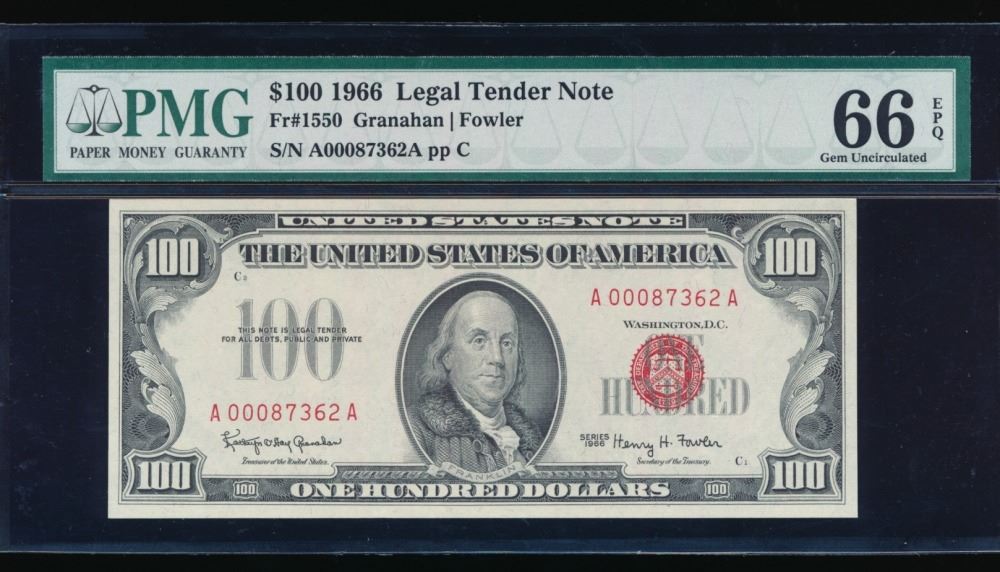 One 1966 $100 Legal Tender Note PMG 66EPQ.