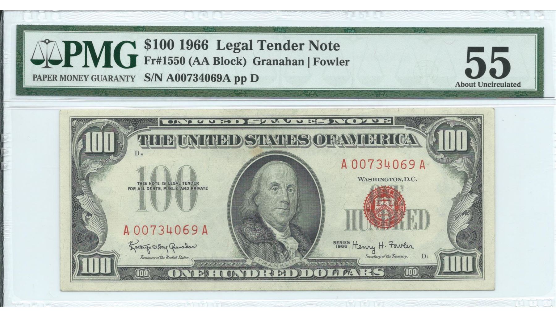 One 1966 $100 Legal Tender Note - 55 About Uncirculated