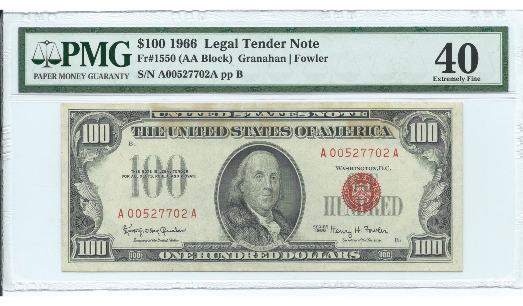 One 1966 $100 Legal Tender Note - 40 Extremely Fine