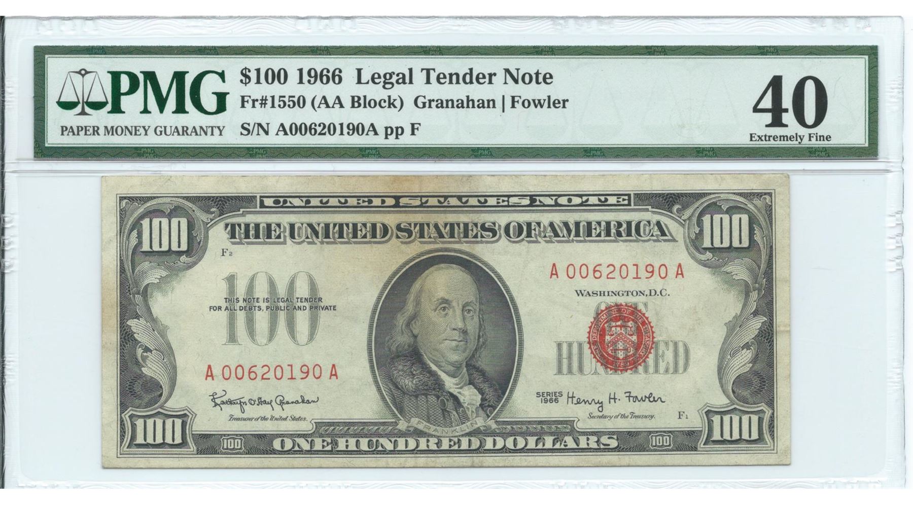 One 1966 $100 Legal Tender Note - 40 Extremely Fine
