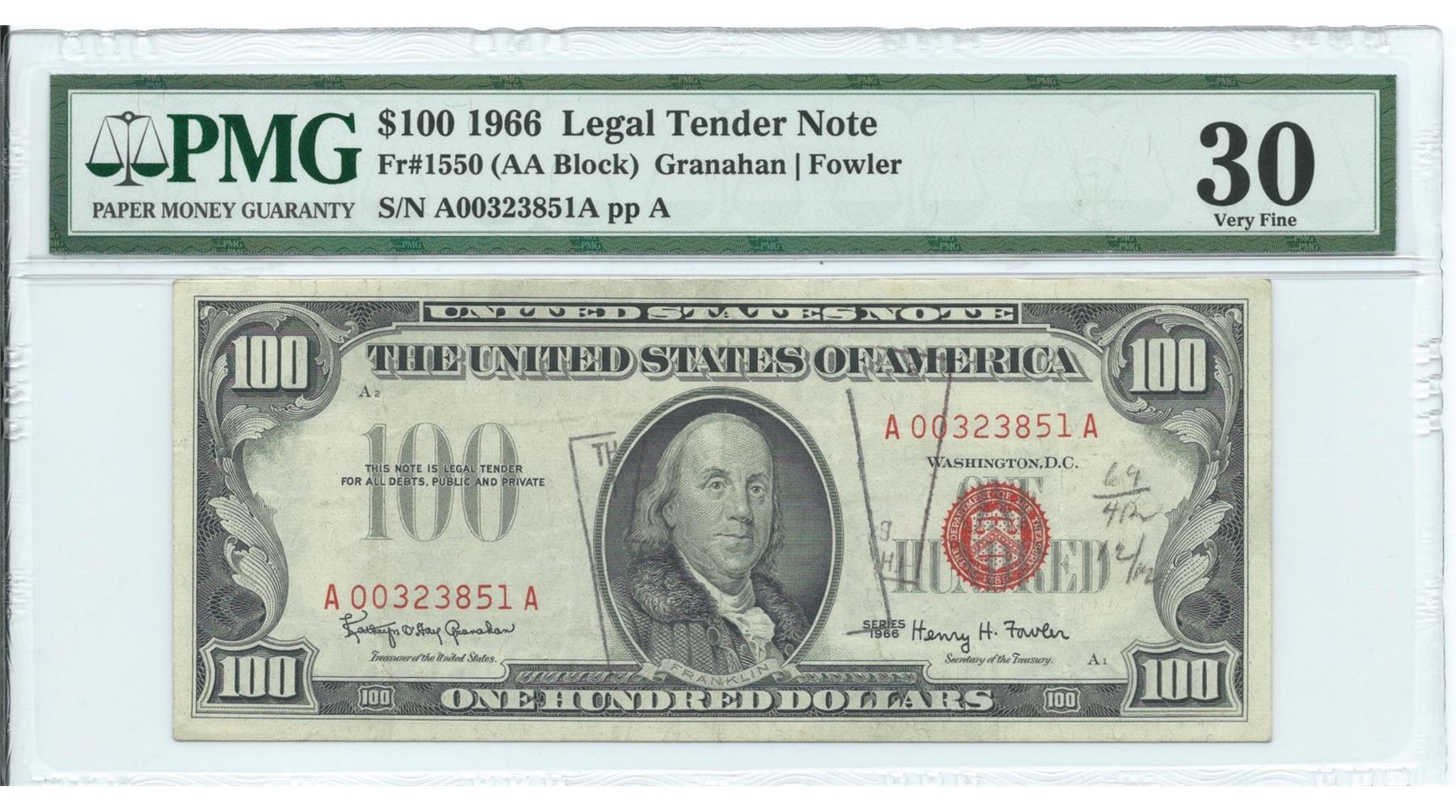 One 1966 $ 100 Legal Tender Note - 30 Very Fine
