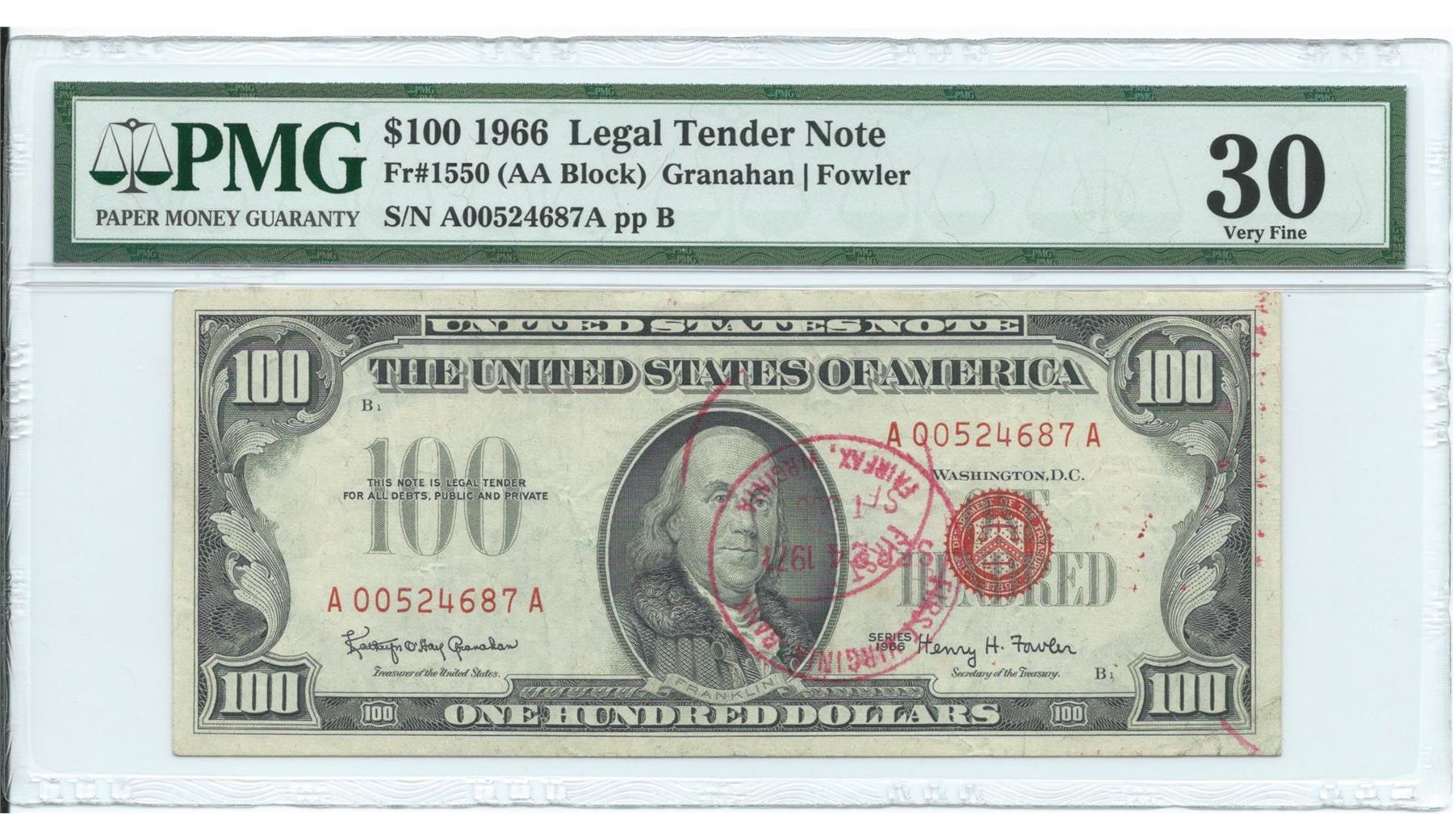 One 1966 $100 Legal Tender Note - 30 Very Fine