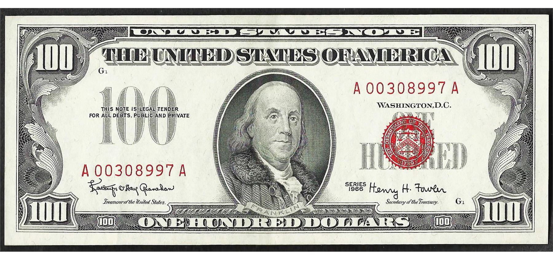 One 1966 $100 Legal Tender Note.