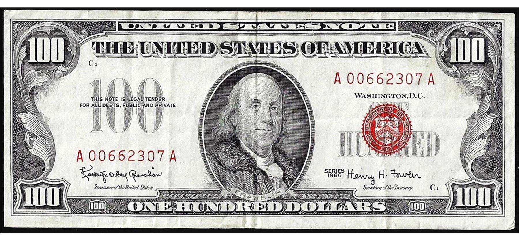 One 1966 $100 Legal Tender Note.