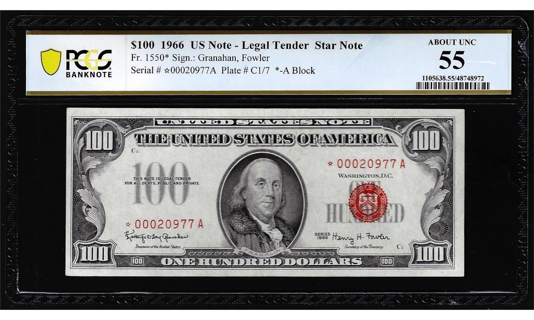 One 1966 $100 Legal Tender STAR Note Fr.1550* PCGS About Uncirculated 55. PCGS Graded.