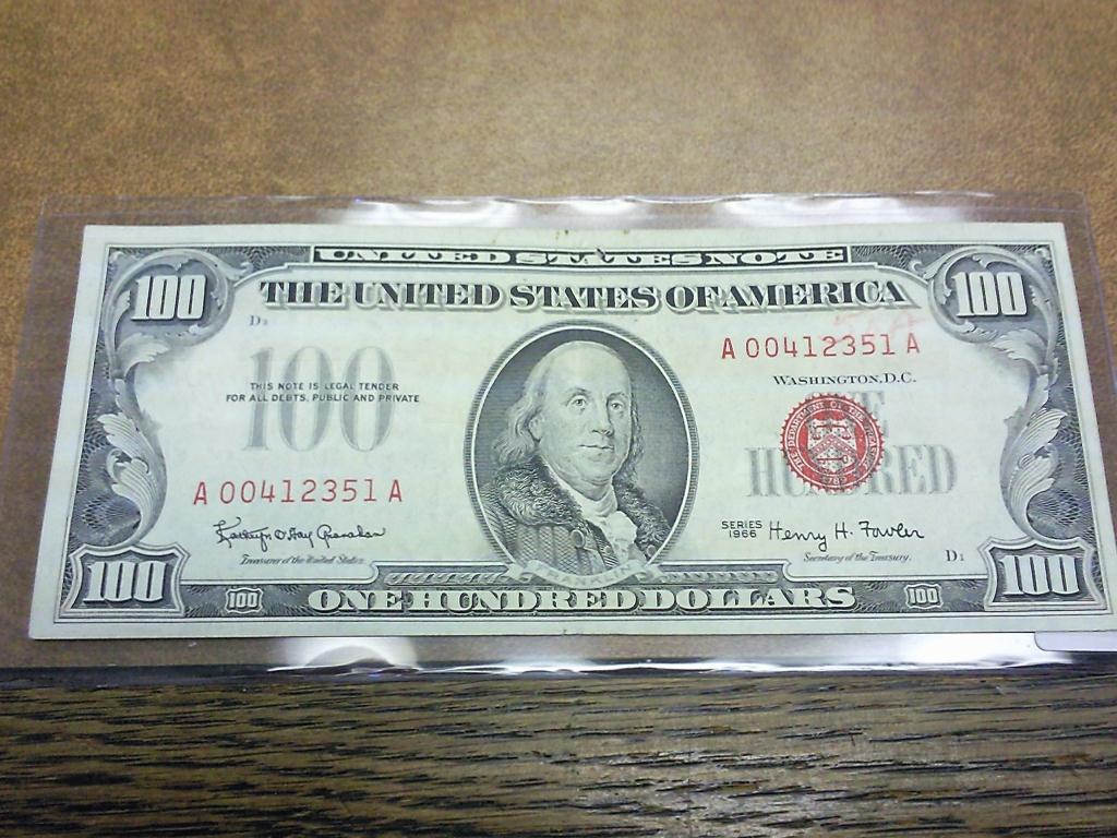 1966 $100 US NOTE RED SEAL TOUGHER TO FIND