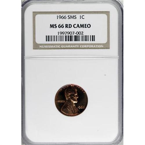 <B>1966 1C SMS MS66 Red Cameo NGC.</B></I> NGC Census: (28/24). PCGS Population (35/17). (#83293)<BR><BR><b>Shipping:</b> Coins & Currency (<a target="_blank" href="http://www.heritageauctions.com/common/shipping.php">view shipping information</a>\)