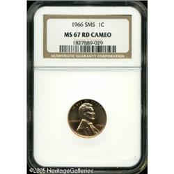 1966 1C SMS MS67 Red Cameo PCGS. Brilliant, copper