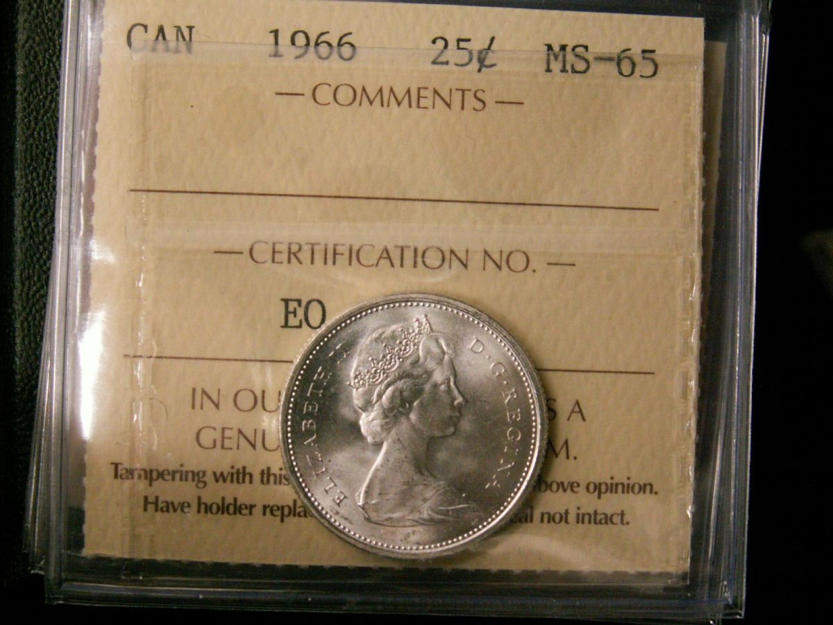 1966 25¢ ICCS MS65. Lot of 3 blast white coins.