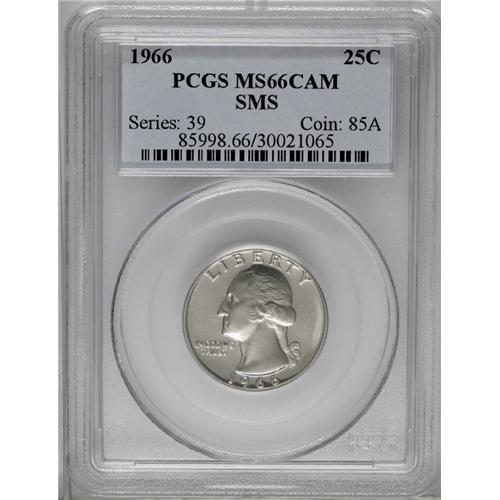 1966 25C SMS MS66 Cameo PCGS. Rather well contrasted f 1966[25C] SMS MS66 Cameo PCGS.